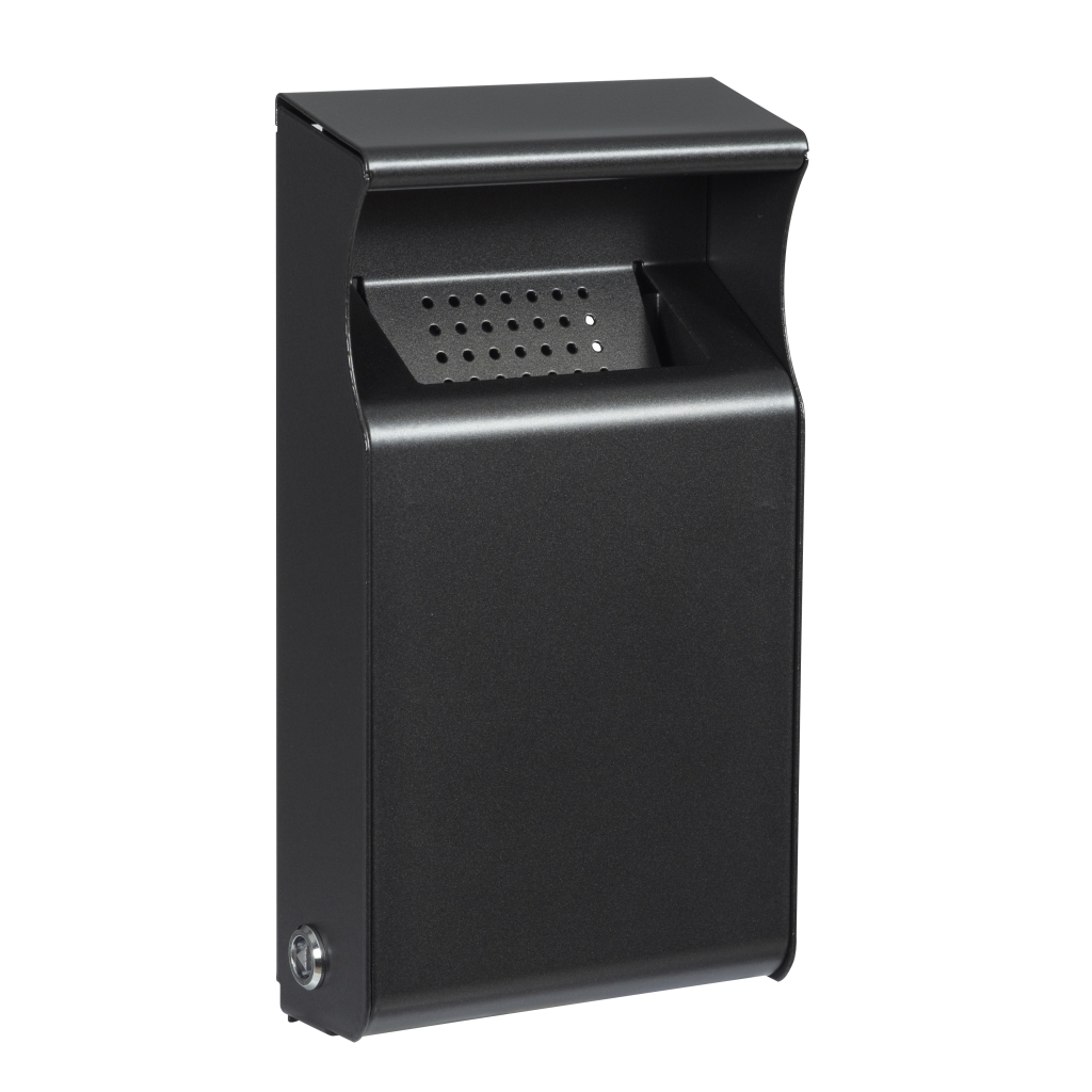 Cette poubelle pour cigarettes résiste aux intempéries et aux UV. Elle dispose d'une serrure anti-vandalisme pour éviter son ouverture par des personnes non autorisées.