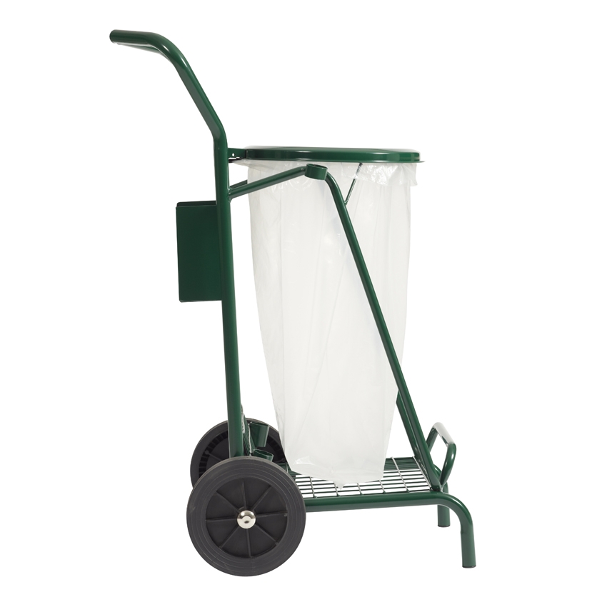 Le chariot de voirie 110L Mobisac est idéal pour les employés en charge de l'entretien des espaces verts. Il comporte 2 emplacements pour accessoires type balai ou pelle ainsi qu'un bac de rangement porte-outils.