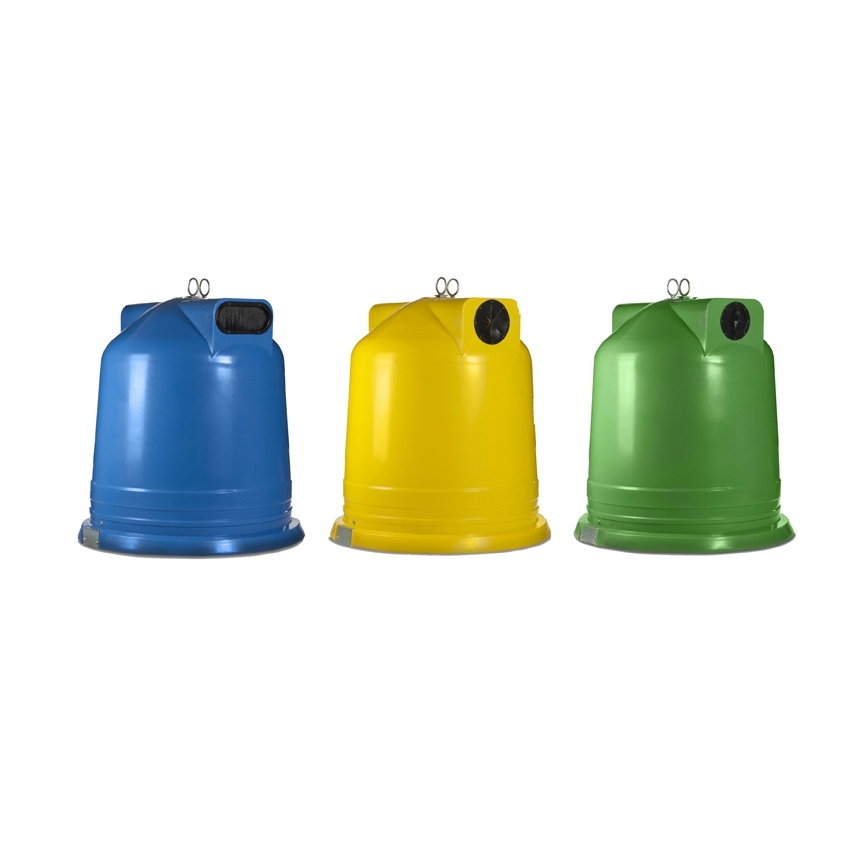 La colonne aérienne circulaire de 2500 à 3000L existe en plusieurs versions avec différentes dimensions d'orifices de chargement pour s'adapter à tous les types de collecte (verre, papier...). Fabriquée en polyéthylène haute densité, elle résiste à la fois aux UV, aux intempéries et à la corrosion.