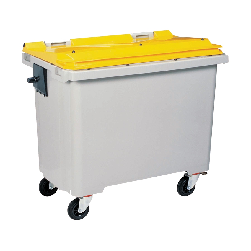 Le conteneur 4 roues 770L Korok présente une très grande capacité pour contenir les déchets d'une grosse structure (immeuble, entreprise...). Il est disponible en différents coloris de couvercle pour faciliter la gestion du tri sélectif et est adapté à la norme EN840 1 à 6.